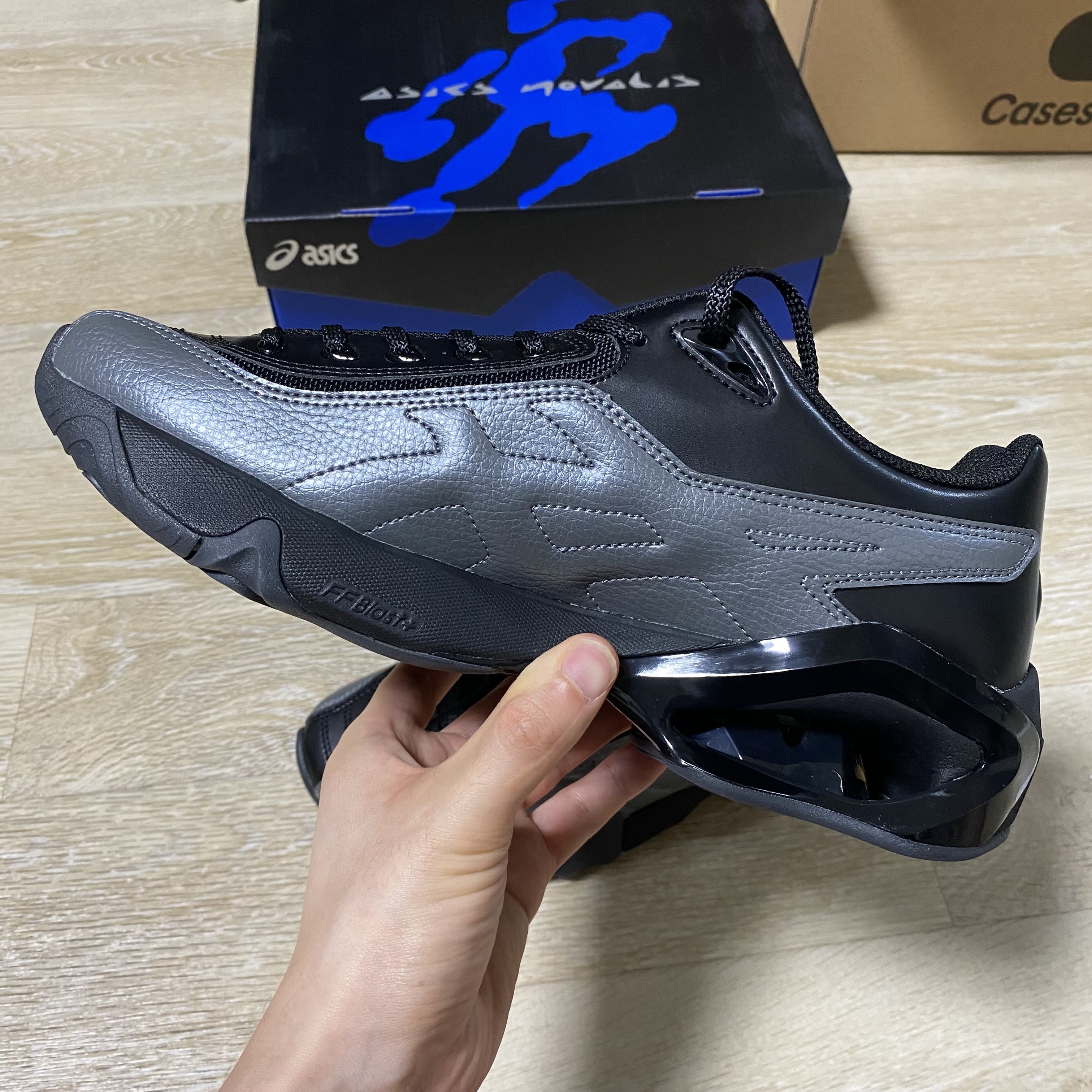 이번 노발리스 신발라인은 블랙, 퍼플, 옐로 3가지 색상으로 발매를 하였습니다. 국내에서는 아식스 공홈은 선착순, 케이스스터디와 웍스아웃에서는 응모방식으로 발매를 진행하였고 운 좋게 케이스스터디에서 당첨이 되어 구매할 수 있었습니다.