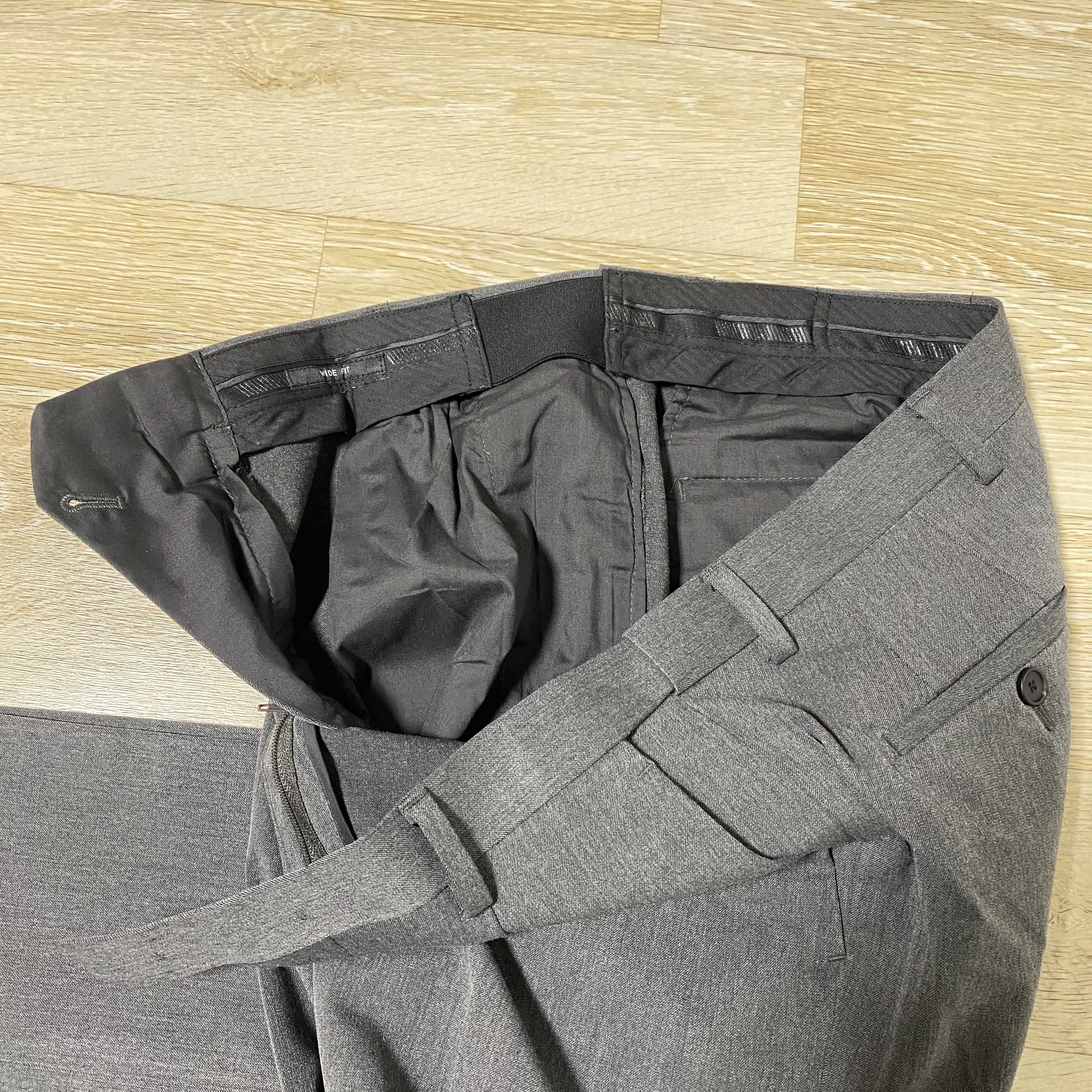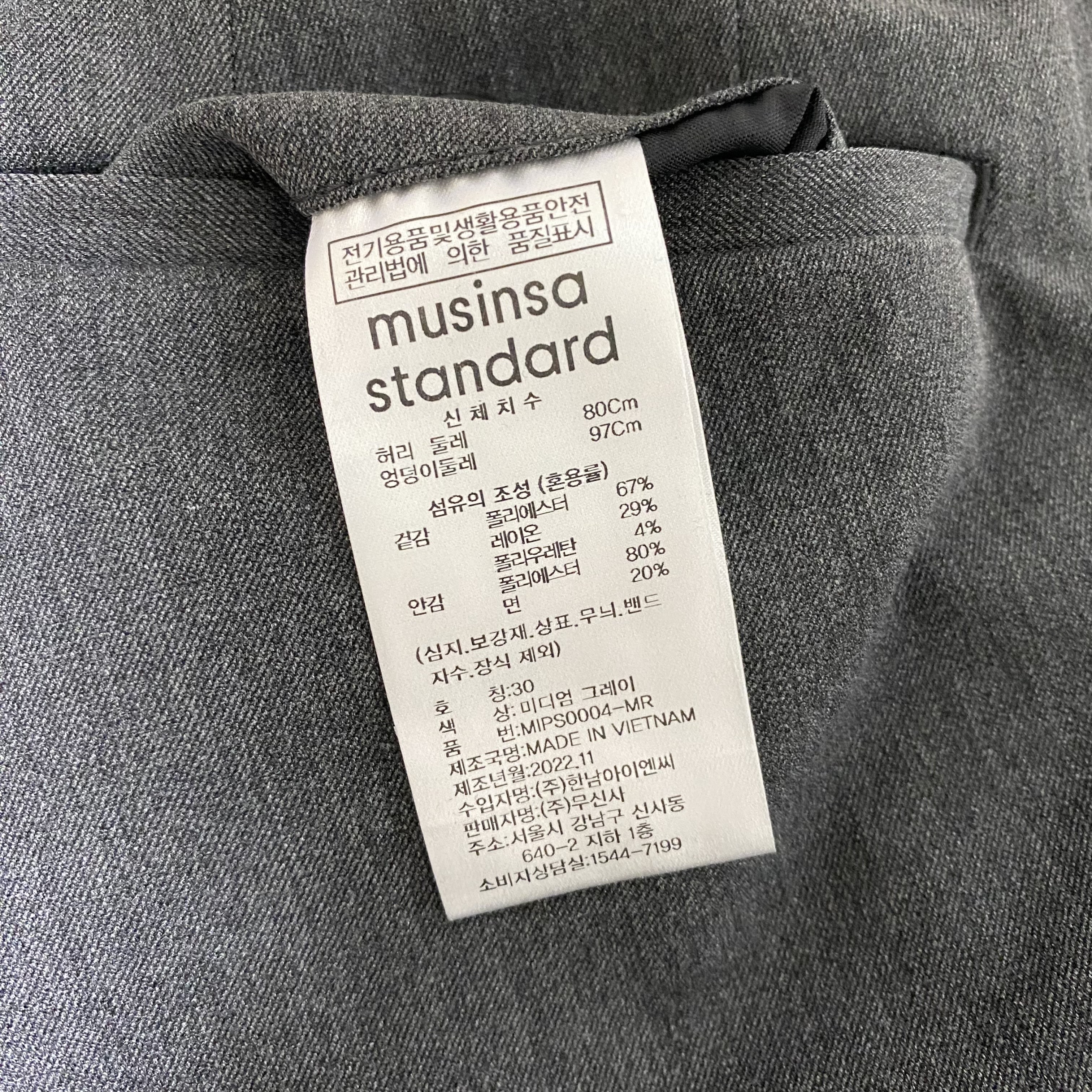 제품명 : 무신사 스탠다드 와이드 히든 밴딩 슬랙스 [미디엄 그레이]
