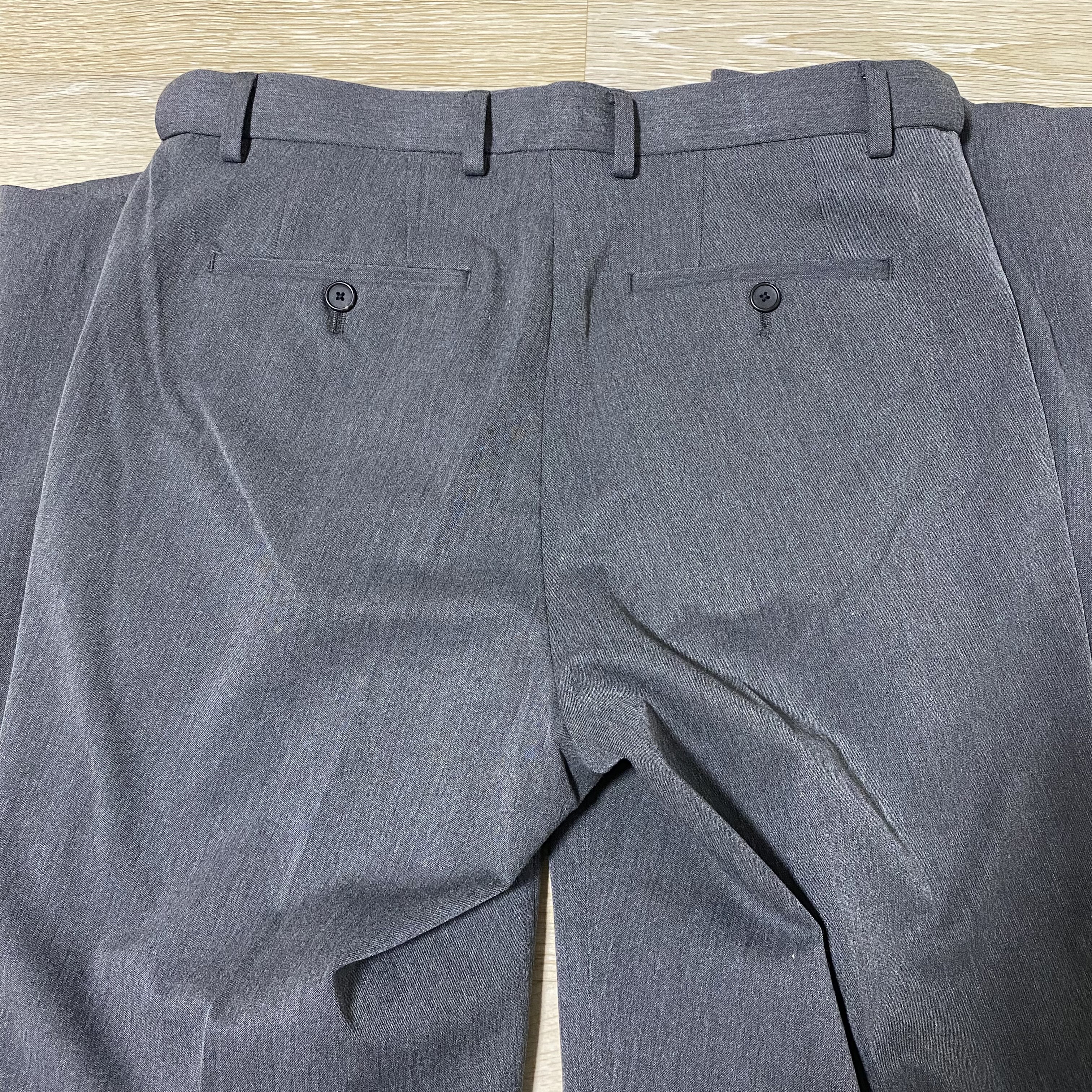 앞쪽은 원턱으로 앞라인을 잡아주고 뒤쪽 주머니는 단추로 마감하되어 있습니다.