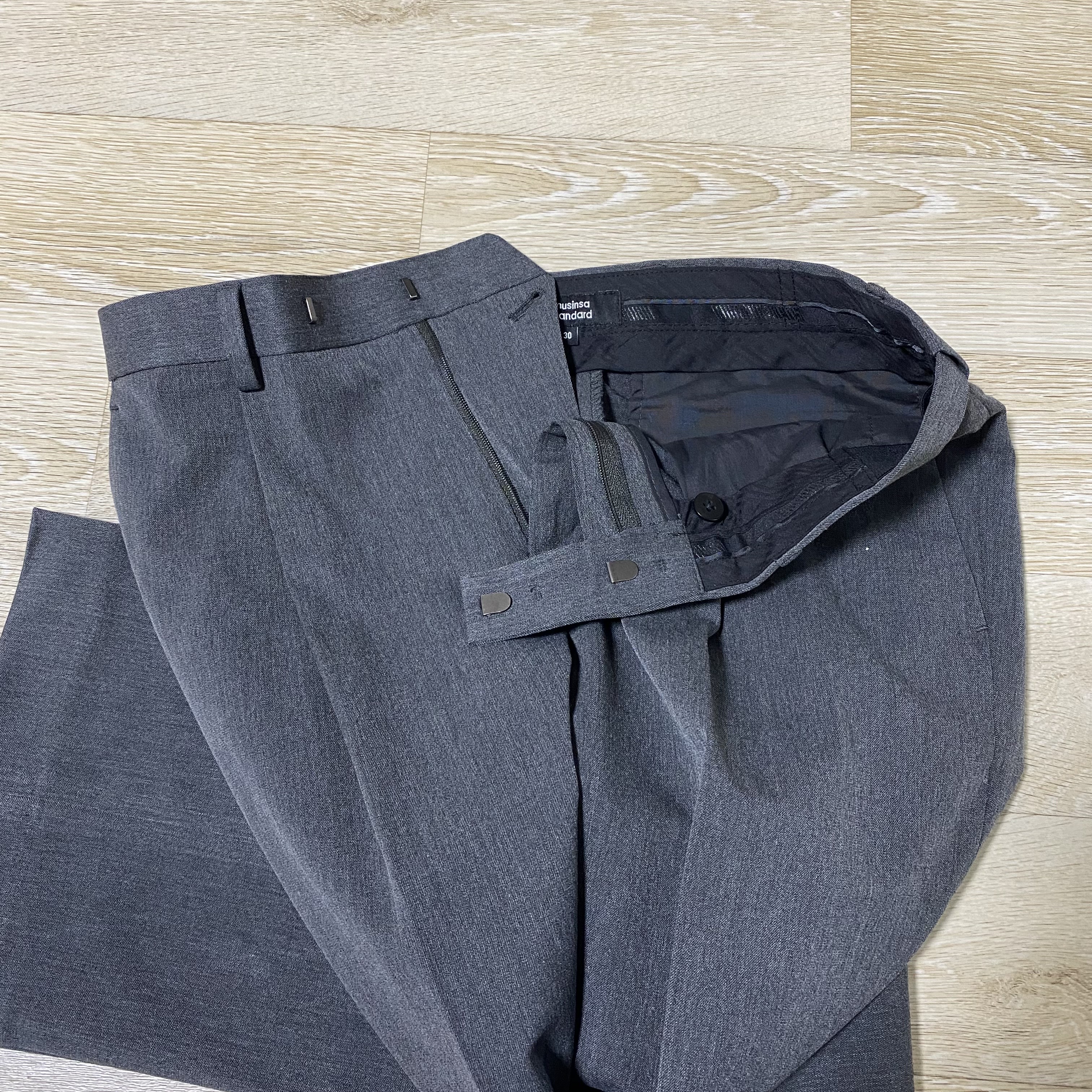 예전 세미와이드 슬랙스도 잘 입고 있어서 이번에 세일기간에 맞춰 와이드도 구매해 봤는데 가격대비 너무 만족스러운 제품입니다. 직장인들에게는 최고의 선택지이지 않을까 생각이 됩니다. 비싼 옷 보단 손이 더 자주 가는 가성비의 무탠다드 와이드 슬랙스입니다.