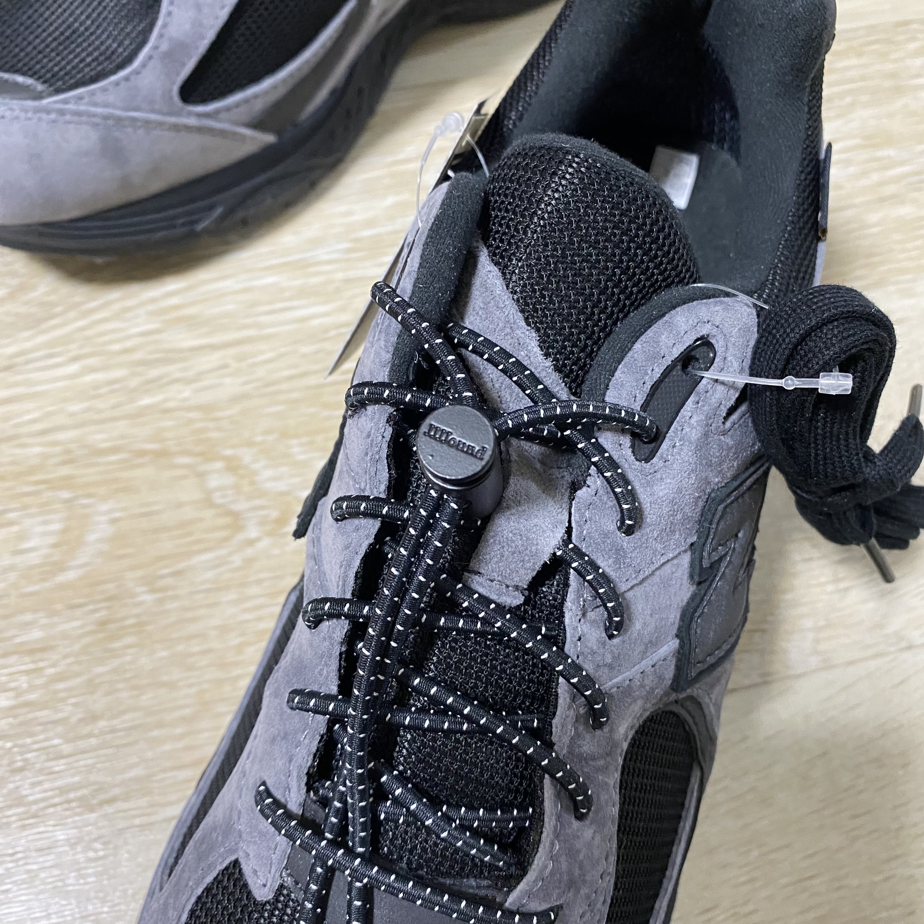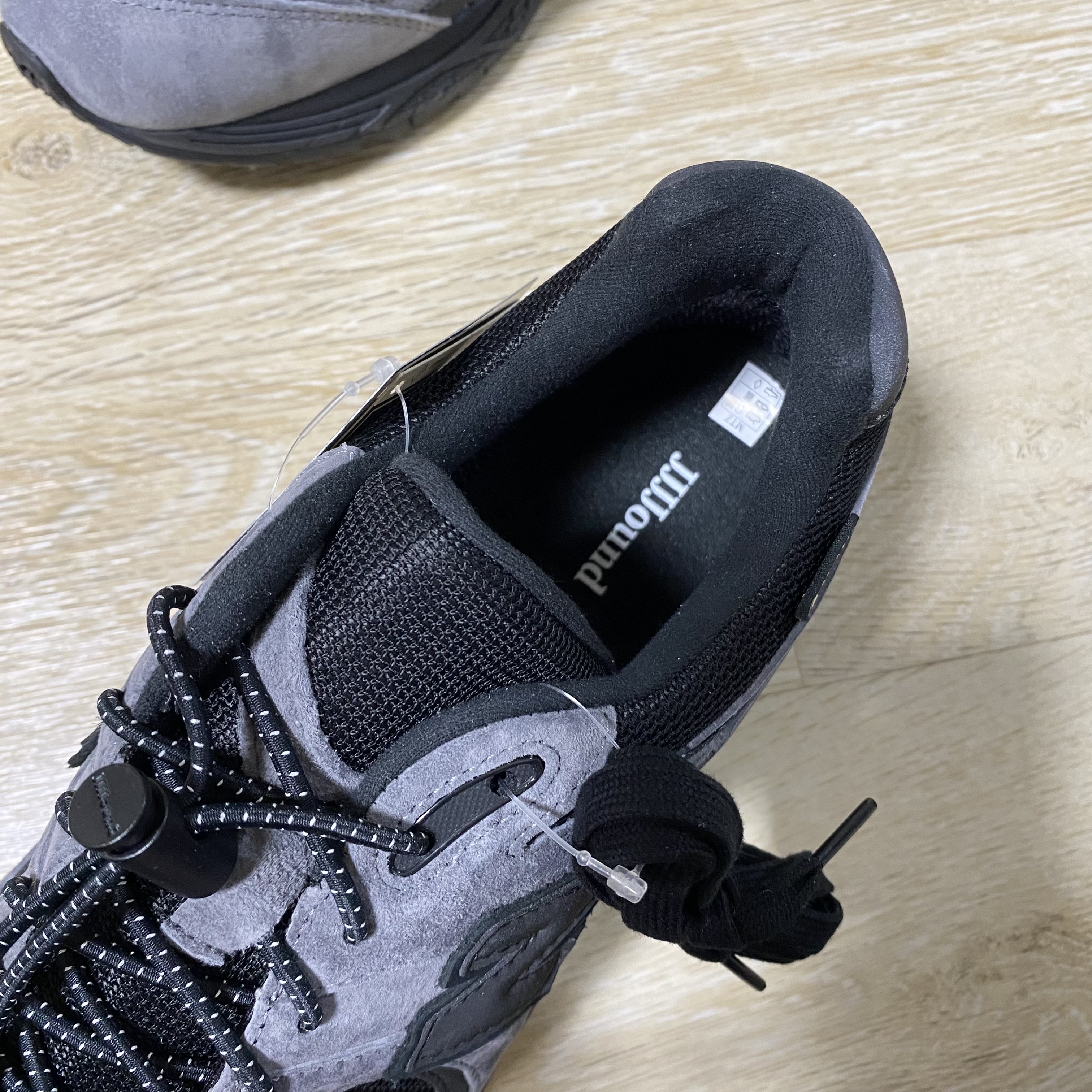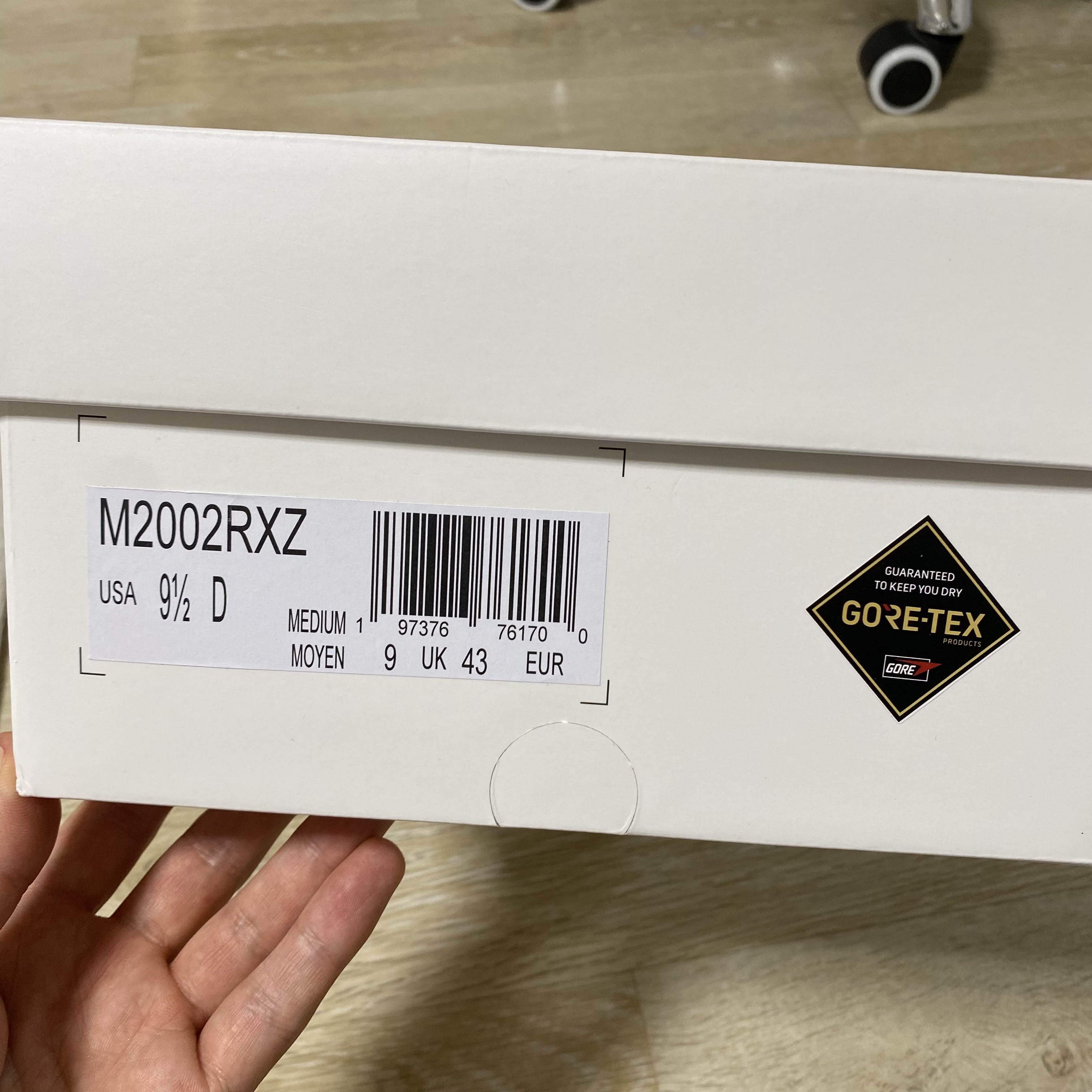 자운드 콜라보 제품으로 신발박스도 완성도가 높았습니다. 박스에는 콜라보를 상징하는 뉴발과 자운드의 텍스트가 보이고 사이즈 정보와 모델명 그리고 고어텍스 스티커가 부착되어 있습니다.