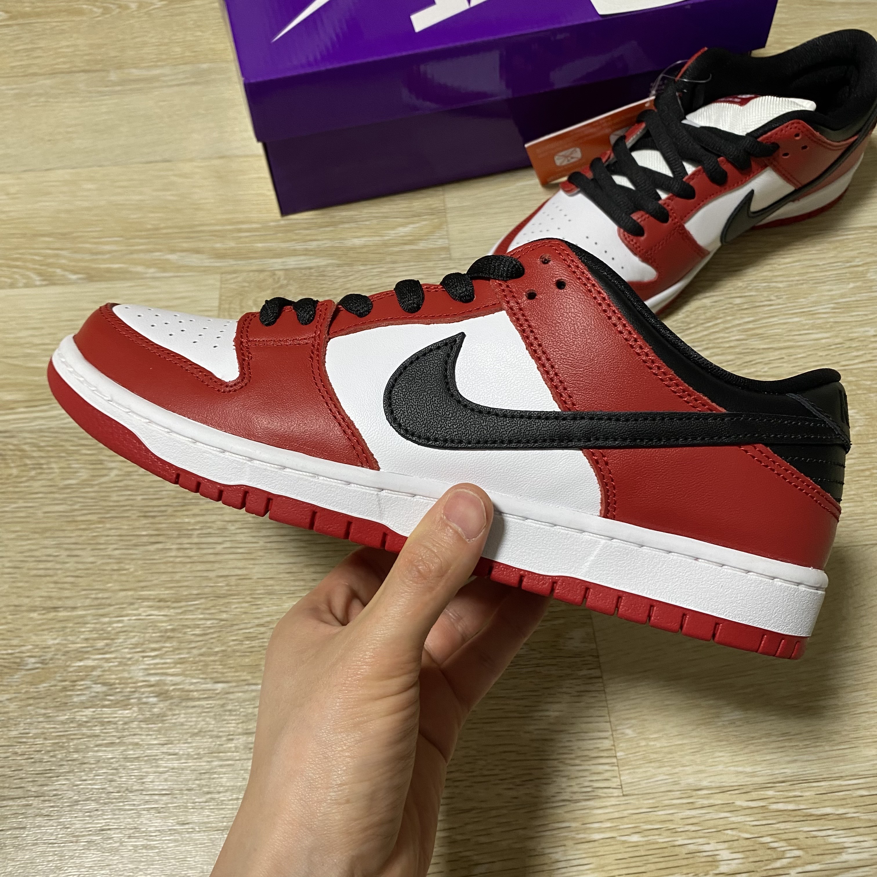 인기 있는 SB덩크에 시카고 컬러라 경쟁이 치열했는데 운 좋게 정가에 구매할 수 있는 기회를 잡았습니다.