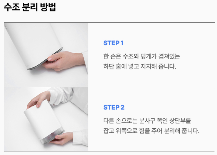 처음 수조와 본체를 분리할 때 생각보다 쉽게 되지않으니 확인 하고 분리하세요!