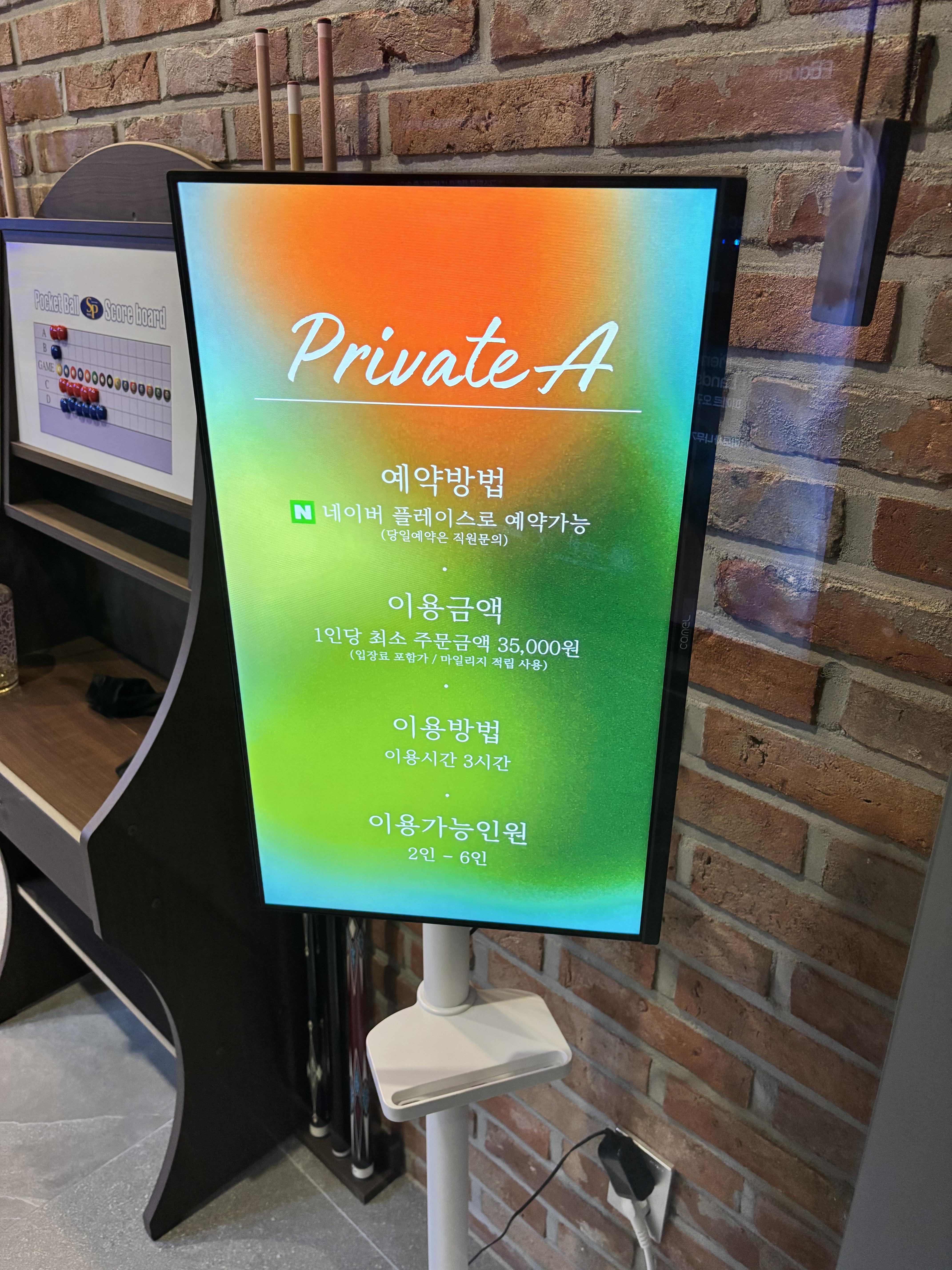 저희는 프라이빗 A를 미리 예약하여 포켓볼을 즐기면서 식사를 하였습니다.