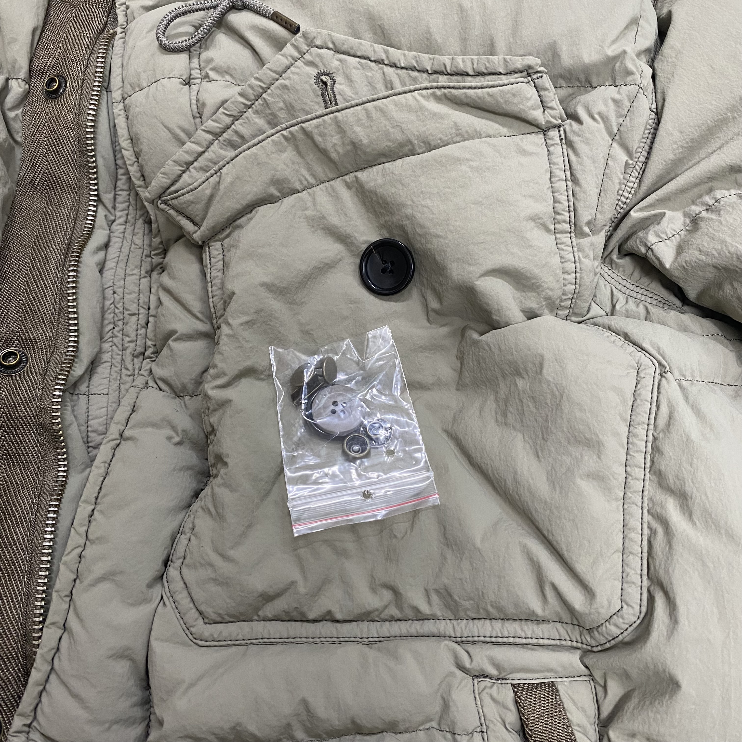 가슴 쪽 포켓에는 여분의 단추가 들어있고, 소매 쪽도 바람이 통하지 않게 내부 시보리로 잡아주고 있습니다.