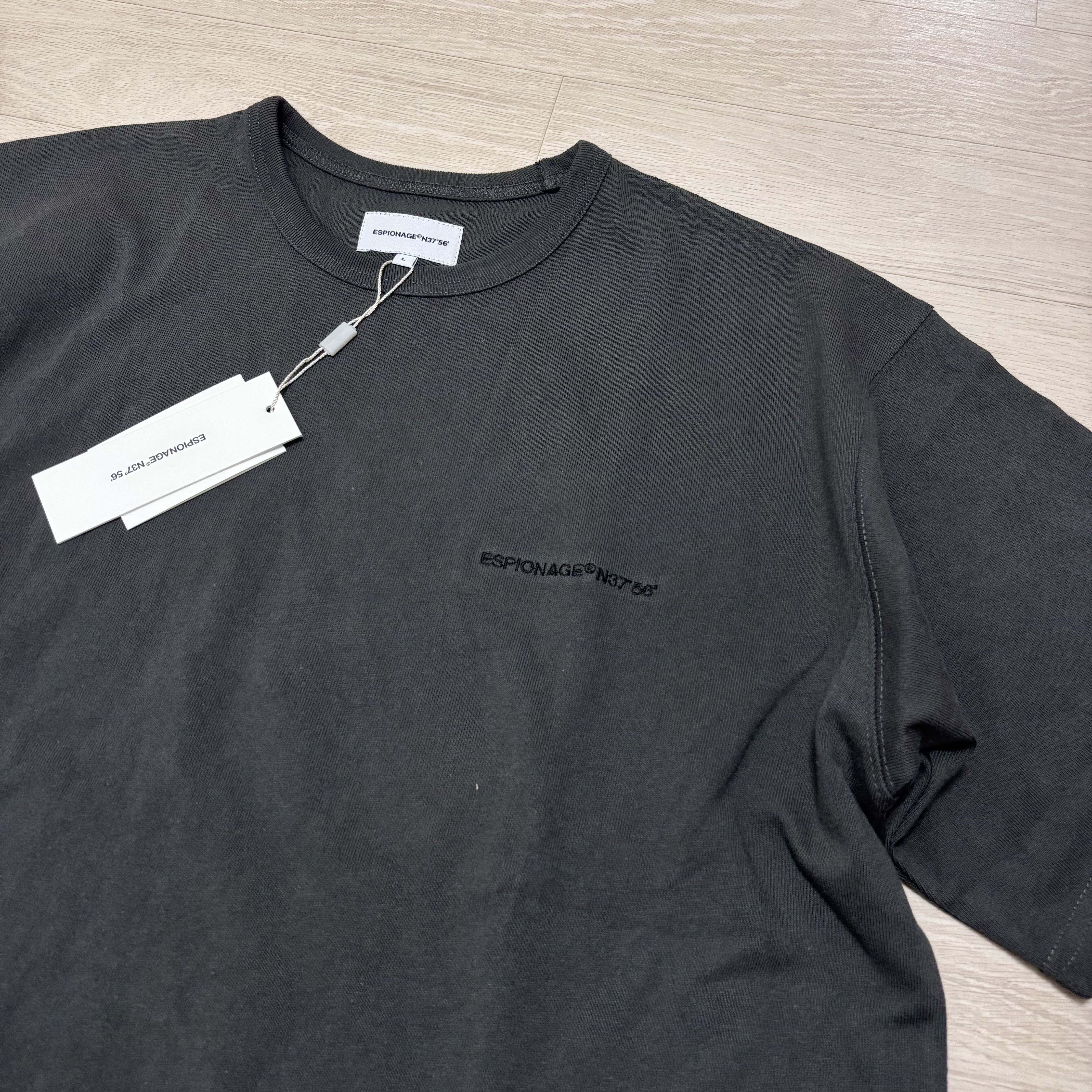특별한 디자인은 없이 왼쪽 가슴 쪽에 에스피오나지 로고가 자수로 박혀있는 무지 반팔티!