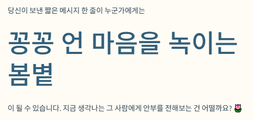 - 미세먼지와 황사 언급: 무조건 "맑은 봄날"이라고 하기보다는 "미세먼지가 심한 요즘, 호흡기 건강 유의하세요"라는 진심 어린 걱정이 더 큰 감동을 줍니다.