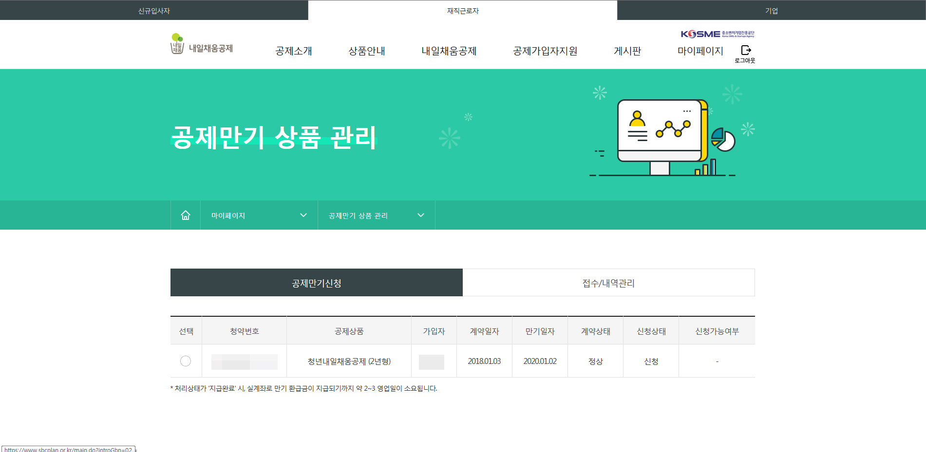 현재상황이나 만기 상황은 내일채움공재 홈페이지 공인인증서 로그인을 하면 확인을 할 수 있다.