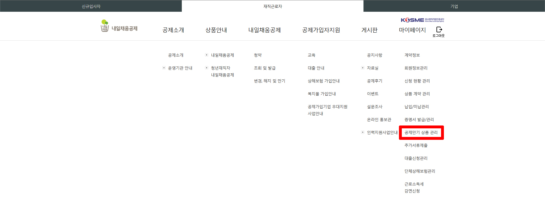 홈페이지에 들어가면 마이페이지>공제만기상품관리를 들어가면 나의 만기된 상품을 볼 수있다.