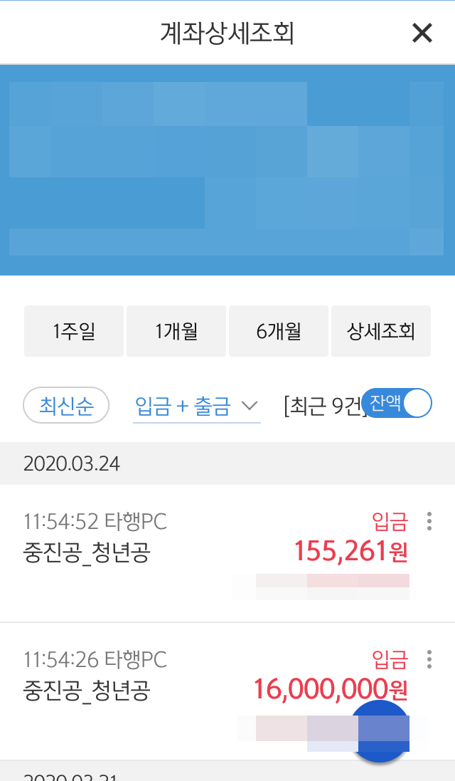 만기금액 입금 : 2020년 3월 24일
