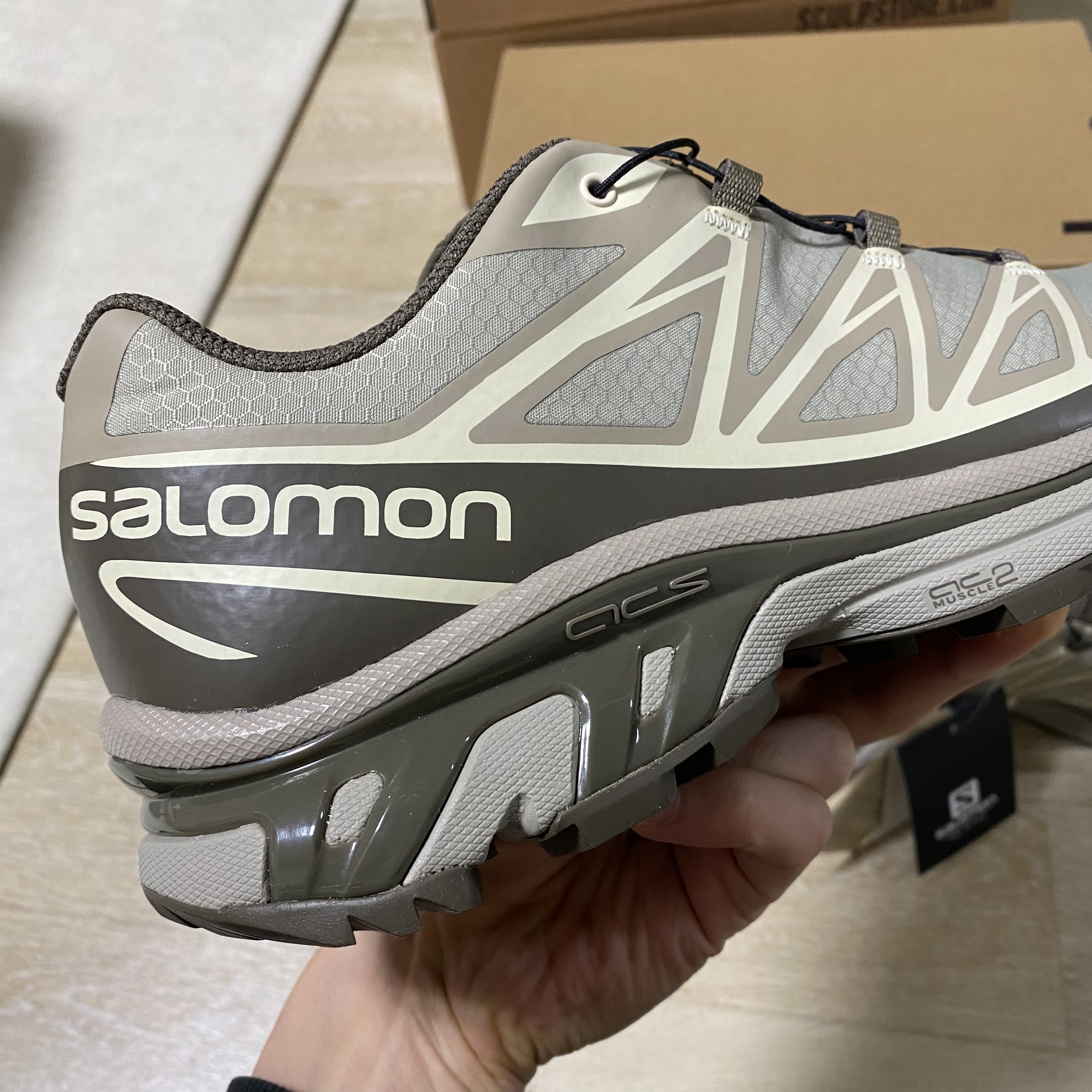 신발의 양 옆으로는 살로몬과 그리고 모델명이 적혀있고,