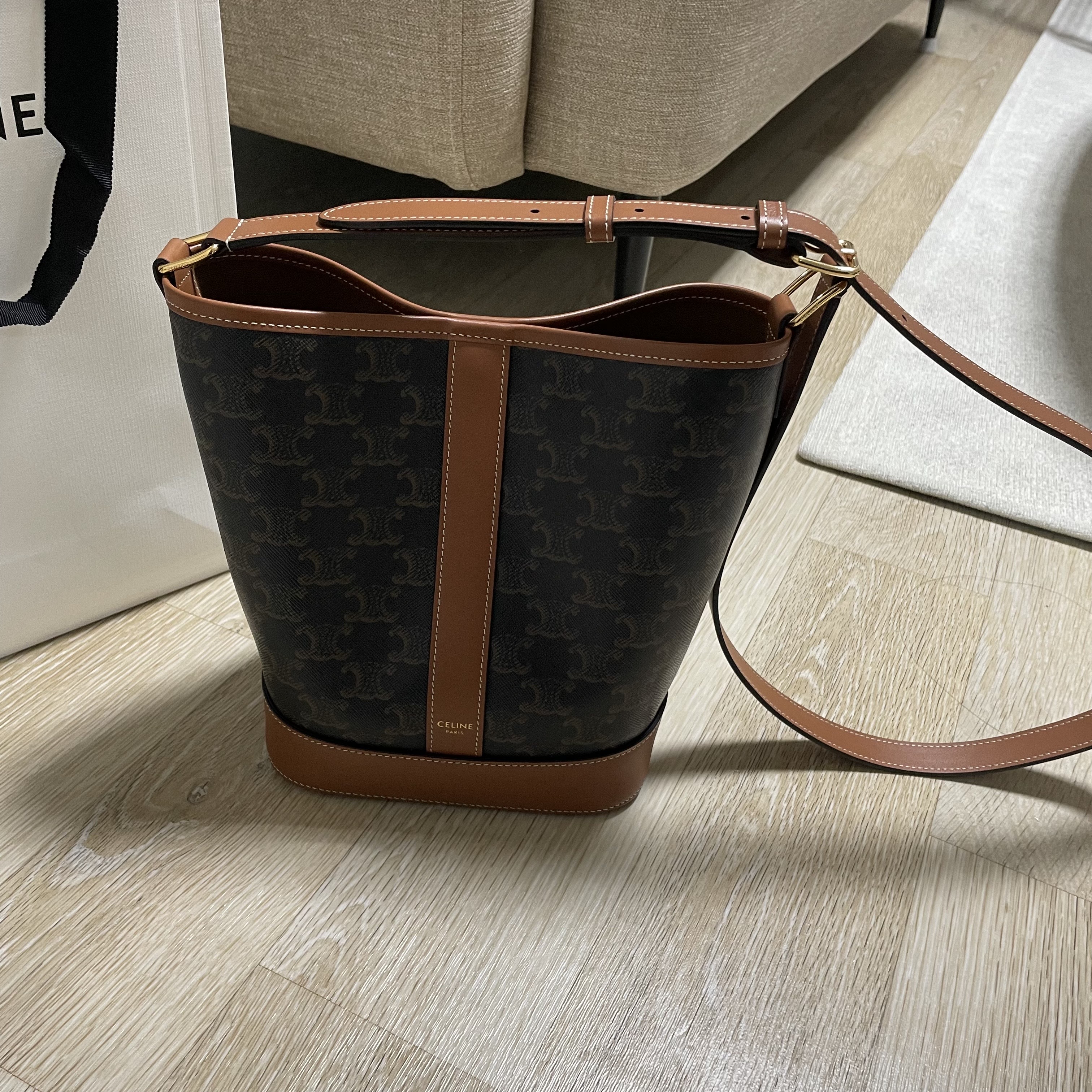 스몰 버킷 - 트리옹프 캔버스 & 카프스킨 - 탠 | CELINE | 셀린느